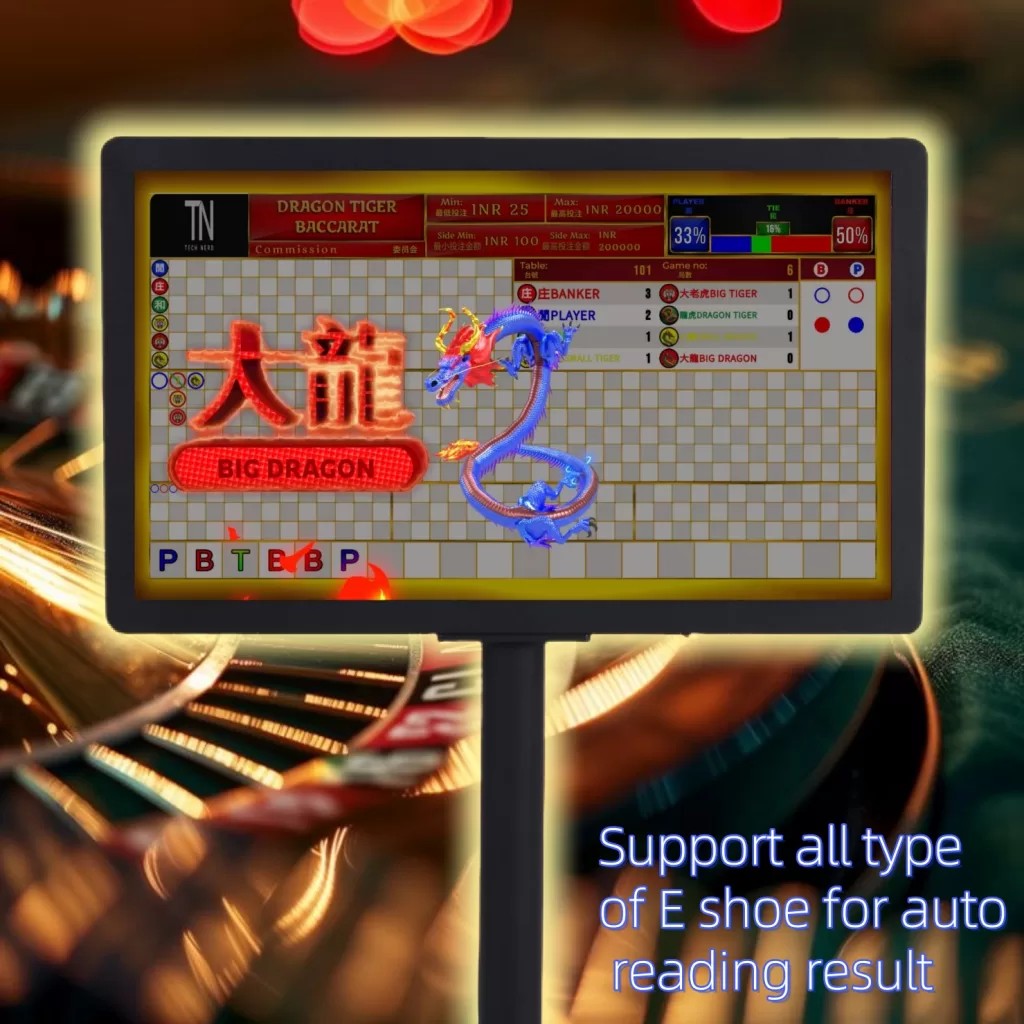 Elevate your gaming experience with our exquisite baccarat displays! Select from 27″ or 24″ screens with captivating animations, supporting all E-shoe types, and offering hardware customization options.