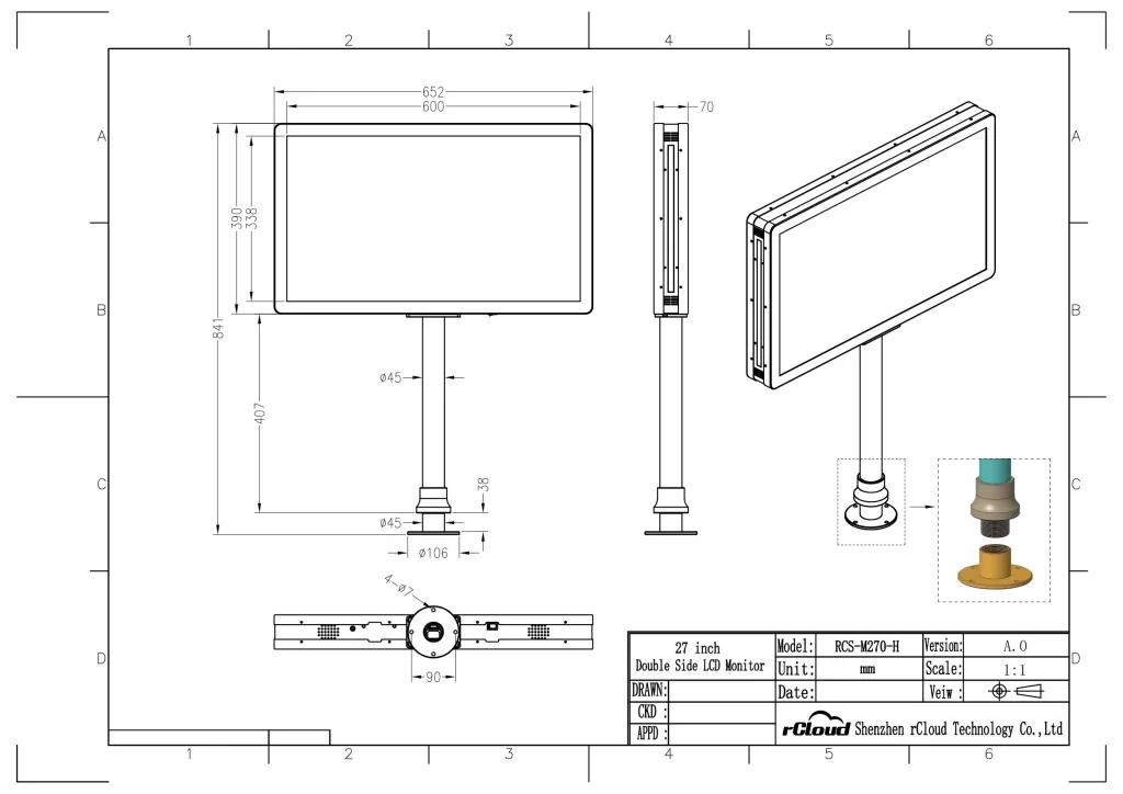 The double-side LCD monitor offers an innovative solution for businesses needing versatile, multi-view displays. With a 27-inch screen size, this monitor supports clear, high-resolution visuals on both sides, making it ideal for a variety of commercial applications. Whether for digital signage in retail spaces or interactive displays at trade shows, this double-side LCD monitor is designed to attract attention from all directions. Its sleek, modern design ensures that it complements any environment, enhancing branding and visibility for your business.