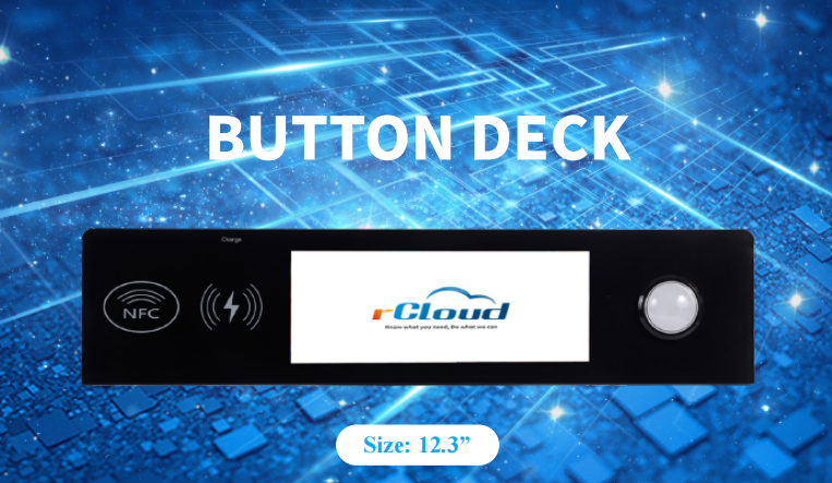 The Button Deck Display is equipped with an NFC reader and wireless charging, It can also support customized cabinets of various sizes to suit your needs.