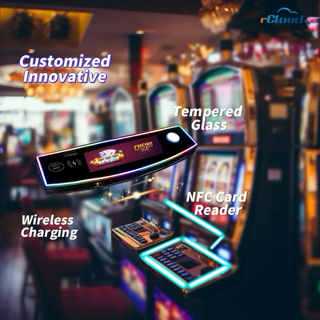 This 12.3-inch extended panel has a resolution of 1920×720, a contrast ratio of 1200:1, and a viewing angle of 89°. The key panel display is equipped with an NFC card reader and wireless charging function. At the same time, this is an innovative key panel display that can support customized settings, which is very suitable for integration into casino gaming machines and customized settings according to the actual size of the customer cabinet.